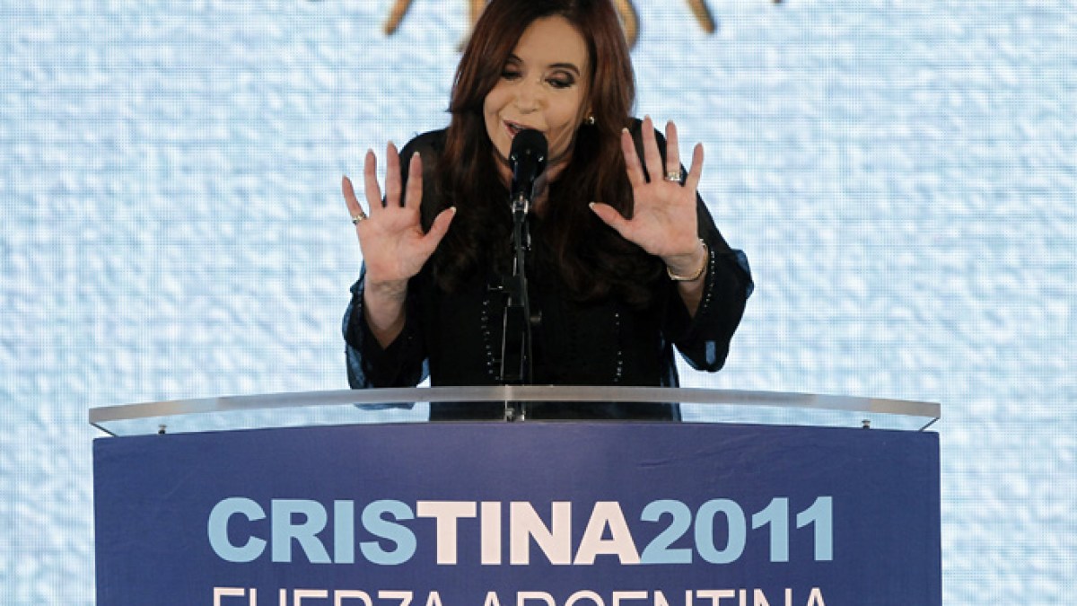 Christina Fernandez Kirchner and her centre left party win nearly 54 per cent of the vote.