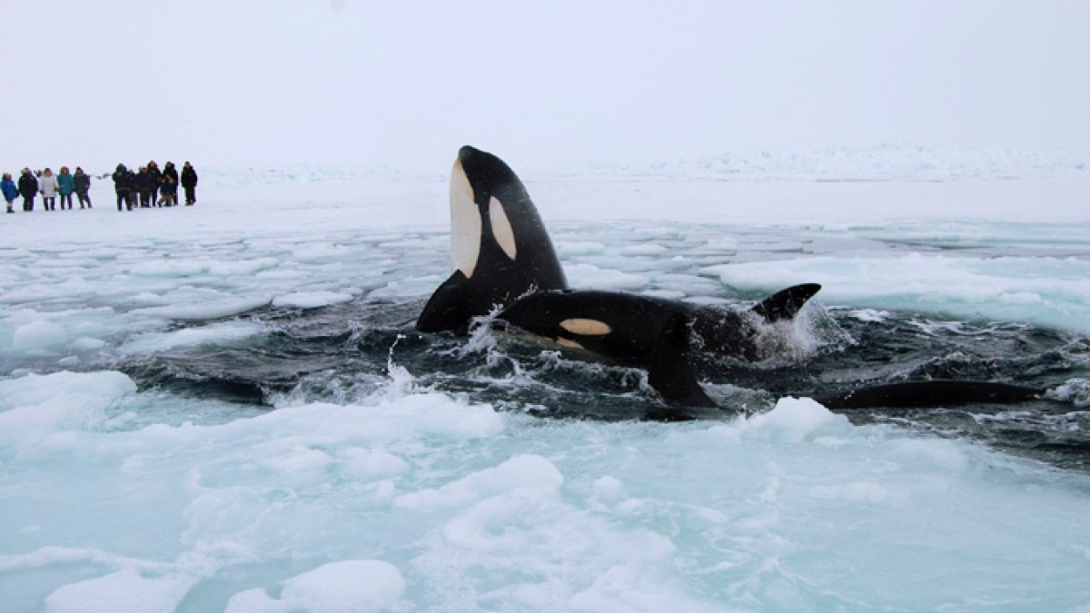 Residents of Inukjuak in Quebec’s Far North are calling for outside help after about a dozen killer whales became trapped under a vast stretch of sea ice.